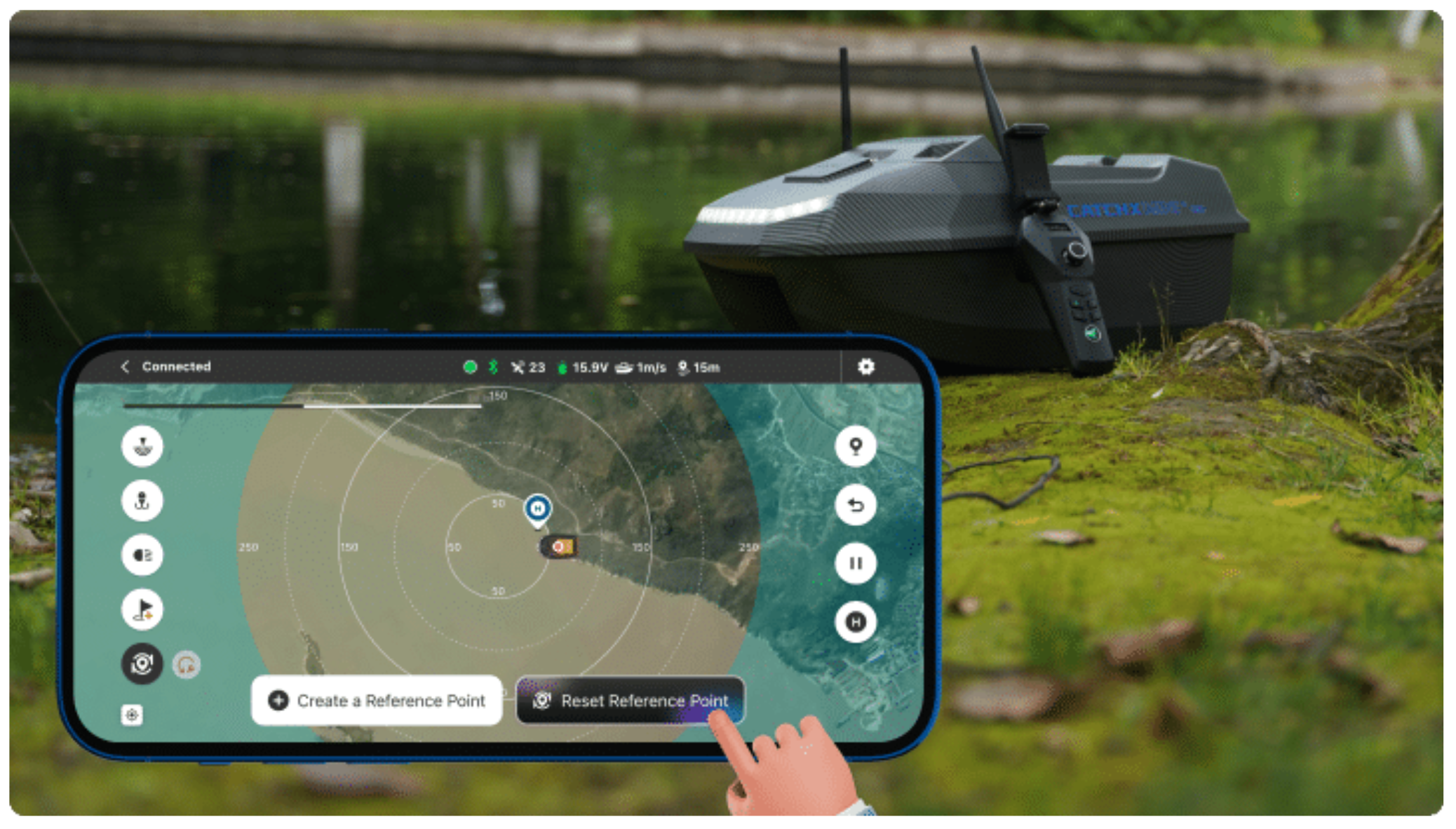 Nikdy sa nemusíte báť, že stratíte svoju GPS návnadovú loďku kvôli výpadku batérie, alebo strate pripojenia. Nebojte sa! Funkcia bezpečného návratu zaisťuje, že sa loďka Rippton bezpečne vráti späť, a to aj v náročných situáciách.